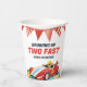 Dos tazas de papel para el segundo cumpleaños del coche de carrera rápida