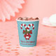 Vasos De Papel Dos Cañones De Vela Rojo Y Blanco Sobre Azul Con T