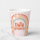 Retro inspiró dos groovy tazas de papel de fiesta de segundo cumpleaños con estilo hippie arcoiris, margaritas y fuentes y colores boho.