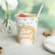 Dos tazas de papel de 2º cumpleaños inspiradas en Groovy Retro con tipos de letra y colores de 70.