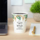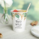 Celebra el segundo cumpleaños de tu pequeño ser salvaje con estas tazas de papel con temática "salvaje" de safari, con monos de Relieve metalizado de imitación dorados y follaje de jungla dorada y verde. Agregue el nombre de su hijo y otro texto personalizado en negro sobre un fondo blanco.