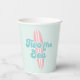 ¡Dos en el mar! Surfing Beach 2º cumpleaños fiesta tazas de papel con tablas de surf color turquesa y rosa.