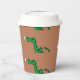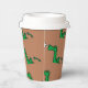 Un ilustracion sobrecogedor con un dragón verde resplandeciente y rebosante de aire que se alza con gracia contra un rico telón de fondo marrón terrenal, que evoca un sentido de majestuosidad antigua y encanto mítico. La vívida postura verde y dinámica del dragón exudan una presencia poderosa que cautiva la imaginación.