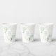 Delicados arreglos de vegetación inspirados en la naturaleza, incluyendo eucaliptos de goma azul con salpicaduras de dorado y de hojas de oro junto con diseños únicos, hacen de este hotel un emocionante boda para cualquier época del año. La taza de papel boda que se muestra aquí presenta un follaje exuberante alrededor de un marco dorado en forma de diamante. Agregue su mensaje personal, nombres y fecha de boda utilizando la plantilla proporcionada. Vea el vínculo de colección en esta página para ver todos los elementos coincidentes de este hermoso diseño o busque ID817 para ver otras piezas y opciones de color para este conjunto.