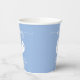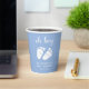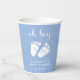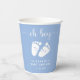 Cute tazas de papel azul para la ducha de tu bebé con "oh boy" en un elegante guión blanco con toallitas y una acuarela blanca de pies de bebé. Debajo se puede personalizar fácilmente con su nombre y fecha de ducha.