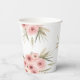 Tazas de papel para ducha de bebé niña zorro con adorable zorrito de bebé niña en un bonito fondo floral de acuarela rosa y dorado. Puedes personalizar fácilmente estas adorables tazas de papel para ducha de bebé zorro simplemente agregando el texto que desees. Puedes mover el zorro según sea necesario.