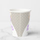 Elegante vestido nupcial con un pozo de rosas de estilo morado floral y gris de la lluvia de nuez de novia ducha desechable de papel taza. Edite estas tazas con su propio nombre de novia. Ideal para usar en un fiesta con ducha de novia y que combina con el conjunto de bodas de rosas púrpura de la ropa. Hay otras opciones de color disponibles. © Arte gráfico original y diseño de Sarah Trett. www.mylittleedenweddings.com