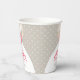 Elegante vestido nupcial con rosas elegantes de color rosa con flores y lluvia de corazón gris ducha de novia desechable taza de papel. Edite estas tazas con su propio nombre de novia. Ideal para usar en un fiesta con ducha de novia y que combina con el conjunto boda de rosas rosadas de vestir. © Arte gráfico original y diseño de Sarah Trett. www.mylittleedenweddings.com