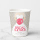 Elegante vestido nupcial con rosas elegantes de color rosa con flores y lluvia de corazón gris ducha de novia desechable taza de papel. Edite estas tazas con su propio nombre de novia. Ideal para usar en un fiesta con ducha de novia y que combina con el conjunto boda de rosas rosadas de vestir. © Arte gráfico original y diseño de Sarah Trett. www.mylittleedenweddings.com