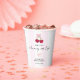 Ducha de novia con tema "Ella es la cereza en la cima" con diseño coquette de lazo rosa personalizado en vasos de papel.