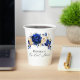 Taza de papel con tema dorado azul real elegante con un ramo elegante de flores de rosa de color azul real, azul marino, dorado, amarillo y brotes de hojas de eucalipto. Por favor, contácteme para cualquier ayuda en personalización o si necesita cualquier otro producto con este diseño.