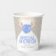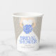 Elegante vestido de novia con un ramo de rosas azules estilizadas y corazón gris lluvia taza de papel desechable para ducha de novia. Edite estas tazas con el nombre de la novia para honrarla. Ideal para usar en una fiesta de ducha de novia y coincide con el conjunto de boda de rosas azules del ramo. Otras opciones de colores están disponibles. © Arte gráfico original y diseño de Sarah Trett. www.mylittleedenweddings.com