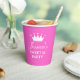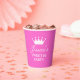 Dulce dieciséis Copas de Papel rosa caliente de la fiesta de cumpleaños número 16 personalizadas con nombre. Diseño lindo para el decimosexto cumpleaños del chica adolescente. Elegante texto de guión y corona de princesa. Diseño de la celebración del 16 de Aniversario. Rosa y blanco. Disponible en diferentes formas. Un fiesta de moda suministra texto personalizado.