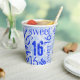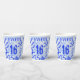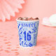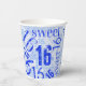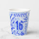 El texto "Feliz Cumpleaños dulce 16" en azul, con los efectos purpurinas provocadores forma este elegante diseño de taza de papel en la nube. El color de fondo es opcional y se puede cambiar si se prefiere. Busque ID265 para ver otras opciones de color y productos adicionales con este diseño.