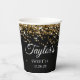 Crea tu propio purpurina dorado y personalizable color sólido color negro fondo dulce de dieciséis años de fiesta tazas de papel para tus invitados. El texto presenta una caligrafía clásica elegante, acompañada de un tipo de letra serif con todos los mayúsculas. Personalizar los estilos de letra para crear tu propio vajilla para su celebración especial. Los destellos y las purpurinas impresiones de arte digital como una foto en estas tazas de papel.