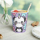 Celebra una celebración mágica con esta adorable Panda Unicorn. El fondo es de color púrpura claro, con un toque floral rosa y azul.
