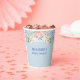 Celebre con estilo con estas tazas de papel higiénico-hidrangea azul floral personalizadas, perfectas para añadir un toque de elegancia a su evento especial. Con un romántico arreglo de hortensias azules y blancas suaves, complementado con peonías polvorientas rosadas y blancas, este diseño exuda belleza intemporal. El marco de un azul polvoriento y elegante, con un delicado decorado de encaje blanco, aporta un encanto femenino inspirado en la sofisticada decoración y la moda del mundo de Nancy Meyers. Ideal para cualquier ducha de novia floral, estas tazas de papel combinan comodidad con diseño de moda, lo que las hace imprescindibles para su celebración. Sirva bebidas con gracia y crea un ambiente inolvidable para la futura novia y sus invitados.