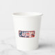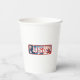 Copas de papel divertidas con tonos rojos, blancos y azules, junto con "USA". Utilice la plantilla para personalizar. Puede conservar el texto o cambiarlo.