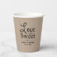 Estas tazas de papel son perfectas para cualquiera que tenga una ducha de boda o de novia este año. El diseño presenta la tipografía "el amor es dulce" guion en un fondo rústico de efecto kraft y fácil de personalizar la redacción de la plantilla. También están disponibles los elementos fiestas coincidentes.
