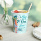 El gran fiesta de playa retro de 1º cumpleaños para surfear tazas de papel personalizadas. Una gran ola azul, palmeras y una tabla de surf, un agradable verano, temática de cumpleaños en la playa.
