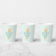 ¡El Grande! Surfing Beach 1° cumpleaños fiesta tazas de papel con olas turquesa y tabla de surf naranja.