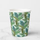 Estos adorables y salvajes vasos de papel para fiestas de cumpleaños con temas de safari presentan una divertida impresión de hojas de jungla.