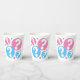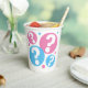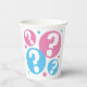 El género revela la chica de la ducha de bebé marca de interrogación Cups de papel. Diseño rosa y azul para amigos, familia e invitados en el fiesta.