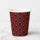 Este impresionante conjunto de tazas de papel estampadas del Partido Halloween muestra una imagen de arte digital de un estúpido pero lindo Vampiro de Halloween. El vampiro tiene el pelo negro puntiagudo, una camisa roja y una chaqueta negra con los botones en forma de corazón rojo sanguíneo. Tiene una sonrisa espeluznante y largos colmillos blancos. También tiene uñas amarillas, calcetines morados y zapatos negros con hebillas de oro sobre ellas. Sus brazos están abiertos dándote la bienvenida a un abrazo malvado.