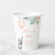 It's a Girl! Cuidada acuarela floral pequeño elefante bebé con un globo rosa de color rosa chisporroso tazas de papel para la ducha.