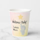 Las tazas de papel de recién nacido/ducha de bebé presentan elefante de bebé con texto estrella y personalizable completo sobre fondo de gradiente pastel.