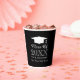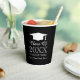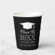 Elegant class of 2023 senior name graduation party Paper Cups. Personalize with your own name and colors. Black and white design with tassel cap icon and stylish typography template.