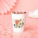 These beautiful paper cups feature a delicate floral arrangement with soft peach and white flowers.
