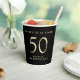 Elevate his 50th birthday party with these elegant black paper cups featuring "Cheers to 50 Years" and his name in simple modern gold lettering,