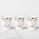 This 80th birthday party paper cups showcases an elegant watercolor floral border adorning the top and bottom. The soft pastel hues of peach and purple offer a delicate and feminine charm, perfect for a woman's birthday celebration.
