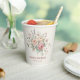 Wedding paper cups featuring pastel rose bouquets and a shabby chic design.