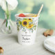 Beautiful, cheerful sunflowers, eucalyptus, and fern leaves create an elegant floral bouquet for your baptism party cups. A rustic wooden cross at the top adds to the blessed occasion. The name, "Baptism", and date are also displayed on the cup. The design is on both the front and the back of the cup. This is perfect for any summer or autumn baptism.