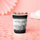 ¡Celebremos el 70 aniversario del boda de platino con estas elegantes tazas de papel! Las elegantes letras en blanco y negro con confeti hexagonal sobre el fondo de un Relieve metalizado platino le dan un toque memorable a esta ocasión especial y a este extraordinario hito. Personalizar con los nombres de la pareja, años de matrimonio y mensajes de felicitación. El reverso muestra un diseño idéntico. Diseño © W.H. Sim. Ver más en zazzle.com/expressionsoccasions