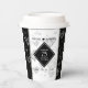 ¡Celebre el 75 aniversario de los bodas de diamantes con estas elegantes tazas de papel! Las elegantes letras en blanco y negro con estilizados detalles de diamante sobre un fondo blanco le dan un toque memorable a esta ocasión especial y a este extraordinario hito. Personalizar con los nombres de la pareja y las fechas del matrimonio. El reverso muestra un diseño idéntico. Diseño © W.H. Sim. Ver más en zazzle.com/expressionsoccasions