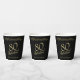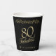 Elegante Black 80 y Fabuloso Ornament 80th Birthday Party Paper Cups. 80 y un texto fabuloso en el moderno guión dorado sobre fondo negro. Personalízalo con tu nombre y tu edad, y haz tus propias y elegantes copas de cumpleaños para la fiesta de cumpleaños de una mujer.