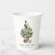 Elegantes tazas de papel vacacional con un árbol navideño de acuarela festivo adornado con adornos de vidrio y rodeado de regalos envueltos. Personalice las tazas de papel de la acuarela de Navidad con un saludo de personalizado, su nombre de familia u otro texto personalizado. Las tazas personalizadas de papel vacacional son perfectas para añadir un toque festivo a tus fiestas de vacaciones, cenas de Navidades, duchas para bebés, bodas, etc.