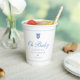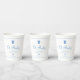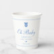 Elegantes tazas de papel Baby Shower con guión azul. Haga clic en el botón personalizar para personalizar de este diseño.