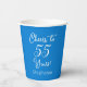 Elegante Blue Cheers to 55 Years 55th Birthday Paper Cup Especial y elegante Copa de Papel Azul especialmente diseñado para tus amigos que están pasando el maravilloso hito de 55! Estas tazas de papel personalizadas le dan el toque perfecto a la configuración de la mesa de tu fiesta de cumpleaños. ¡Planifique a su fiesta con más suministros de nuestra tienda para fiestas de cumpleaños! ¡A tus amigos o a tu familia les encantará una fiesta de cumpleaños con la temática azul elegante!