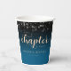 Haga de su día especial una celebración inolvidable con estos sencillos pero elegantes vasos de papel, que incluyen elegantes letras escritas a mano y en bloques en durazno con una ducha de confetti sobre un deslumbrante matiz oceánico de color negro evocador del fondo mediterráneo. Personalizar como se desee. El reverso muestra un diseño idéntico. Diseño © W.H. Sim. Ver más en zazzle.com/expressionsoccasions