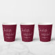 Taza de papel de boda de burgundy de firma personalizada con nombres de estilo de firma y la fecha de su boda especial. Diseñado por Thisisnotme©