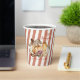 Sencillas rayas en un silencioso viento naranja-rojo otoñal alrededor de esta taza como fondo de un hermoso ilustracion de una recompensa de caída de calabazas y otros productos. Personalice este vaso con su vacaciones y nombre de familia o evento para un simple y encantador añadido a su evento de Acción de Gracias u otro otoño!