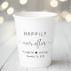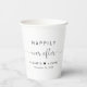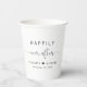 Elegantes tazas de papel para la recepción de tu boda, fiesta de compromiso, cena de ensayo y otras celebraciones de bodas que incluyen "Feliz eterno después" en una simple tipografía moderna y un guión elegante con toques, tus nombres unidos por un corazón y tu fecha boda.