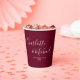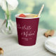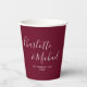 Taza de papel de boda de borgoña elegante con nombres de estilo de firma y fecha de boda especial personalizados. Diseñado por Thisisnotme©
