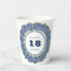 Elegante Floral Blue Hydrangea 18th Birthday Party Paper Cups es una hermosa acuarela con hortensias azules y vegetación. Puede personalizar la edad, la fecha y el texto.