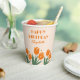 Flores de tulipán retro con una tipografía vibrante en tazas de papel de cumpleaños naranja. Elegantes accesorios fiestas. Personalizar el texto para que se adapte a sus necesidades!