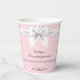 Estas tazas de papel de papel de hilo rosado Tiffany para una ducha bebé para una princesa en camino. Celebra que la madre sea con un lustre rosa, perlas y arco blanco con este diseño elegante. Esta vajilla de ducha de bebé está muy bien pensada y sirve de complemento a la decoración fiesta y a las invitaciones en nuestra tienda. Personaliza el texto para leer lo que quieras!